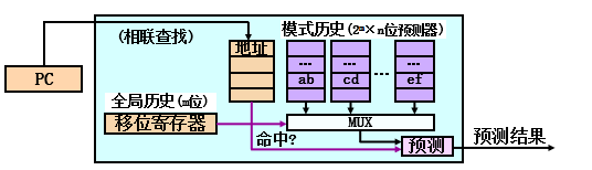 根据全局历史(前m个分支的行为,选择当前所用模式历史;