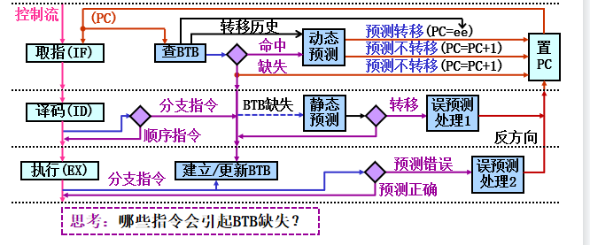 预测处理--IF段用(PC)查BTB,命中时预测PC,缺失时为PC+1