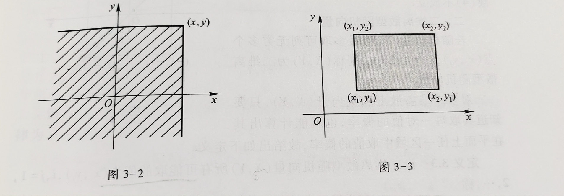 - \(F(x,y)=P(X\le x,Y\le y)称为(X,Y)的联合分布函数\)