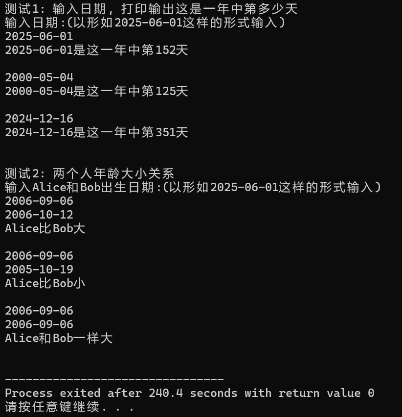 printf("输入Alice和Bob出生日期:(以形如2025-06-01这样的形式输入)\n");