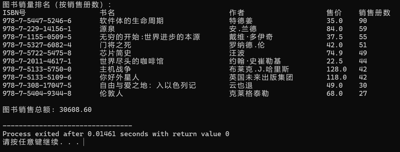 s[i].isbn, s[i].name, s[i].author, s[i].sales_price, s[i].sales_count);
