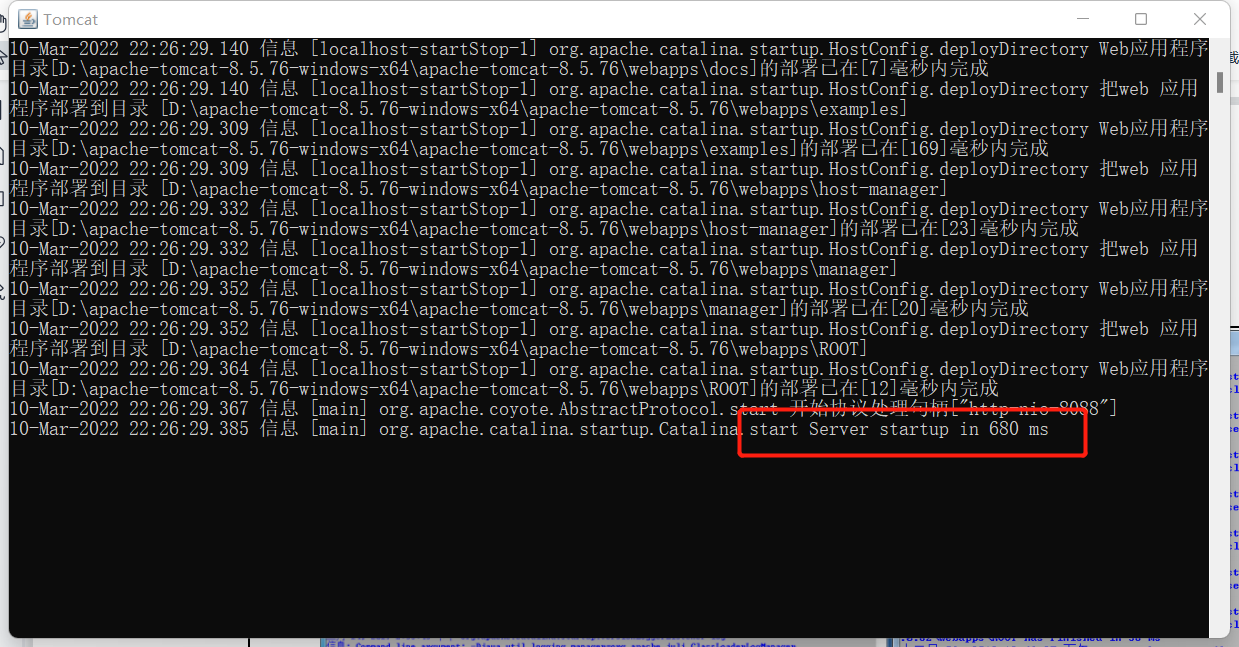 (3)到 Tomcat 的安装路径的 bin 文件夹下,双击运行 startup.bat。