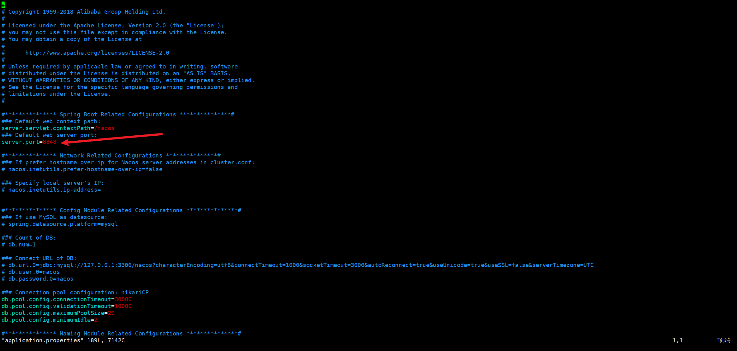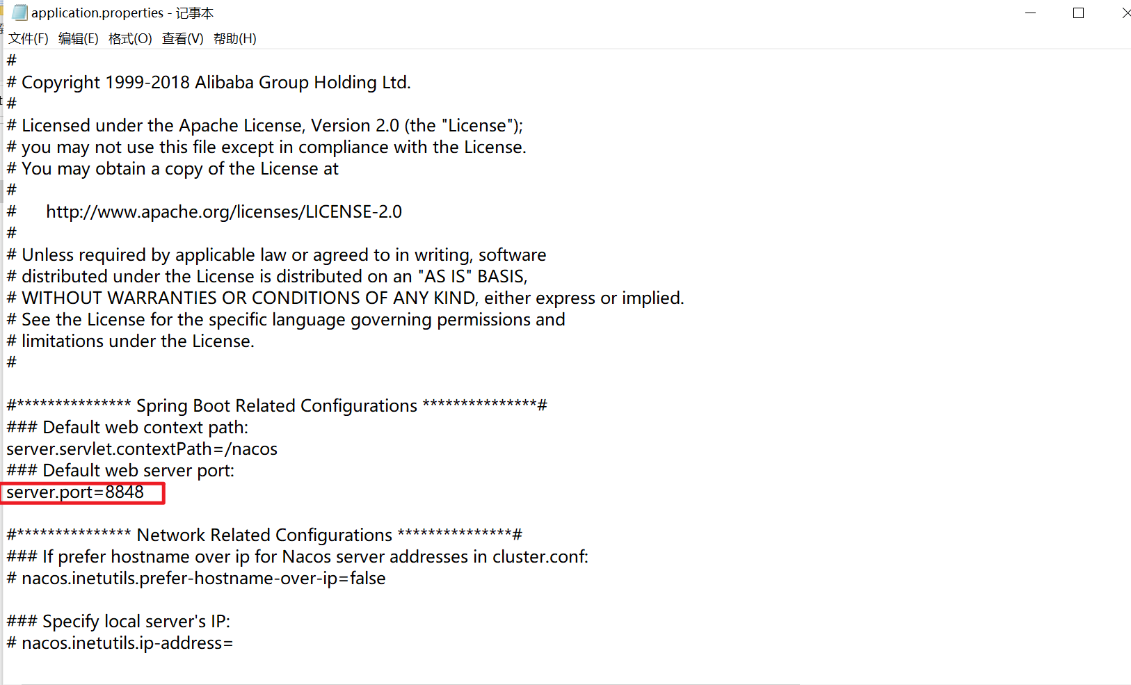 如果无法关闭占用8848端口的进程,也可以进入nacos的conf目录,修改配置文件中的端口: