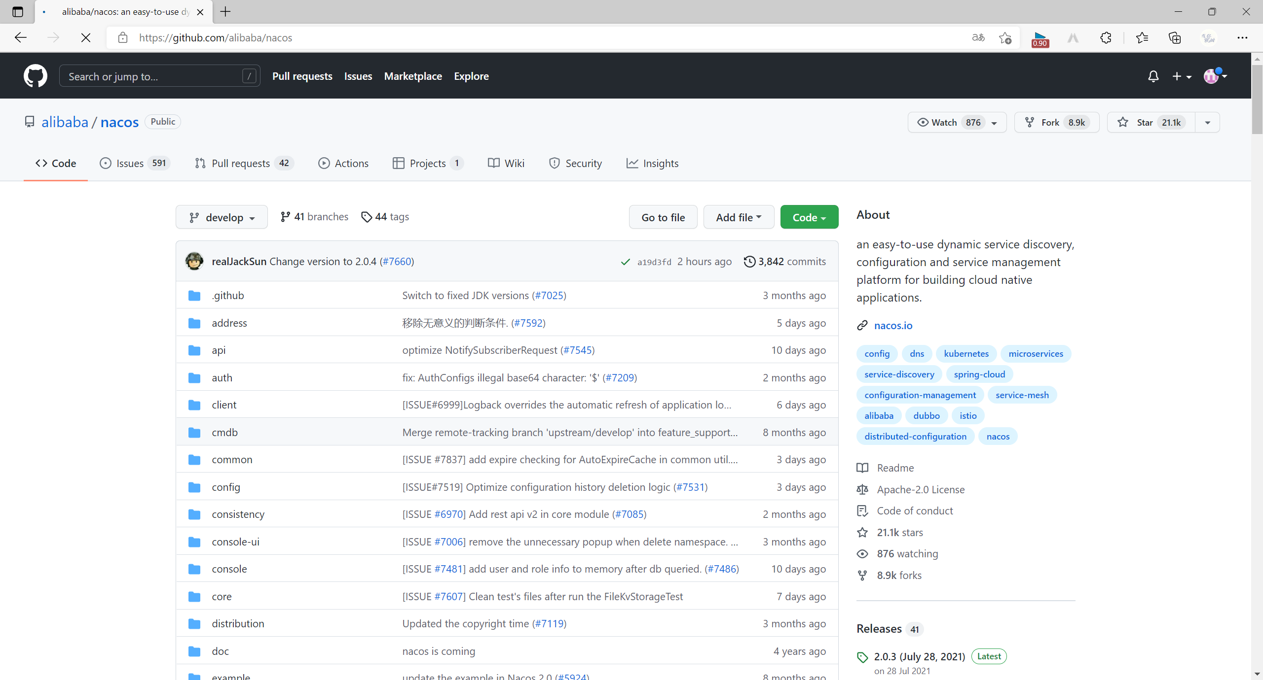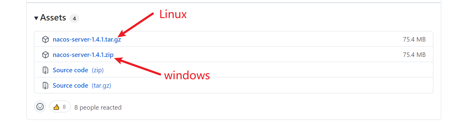 GitHub的Release下载页:https://github.com/alibaba/nacos/releases