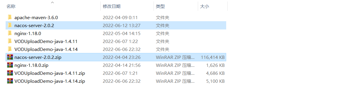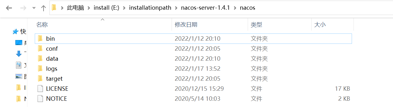 将这个nacos-server-1.4.1.zip包解压到任意非中文目录下,如图: