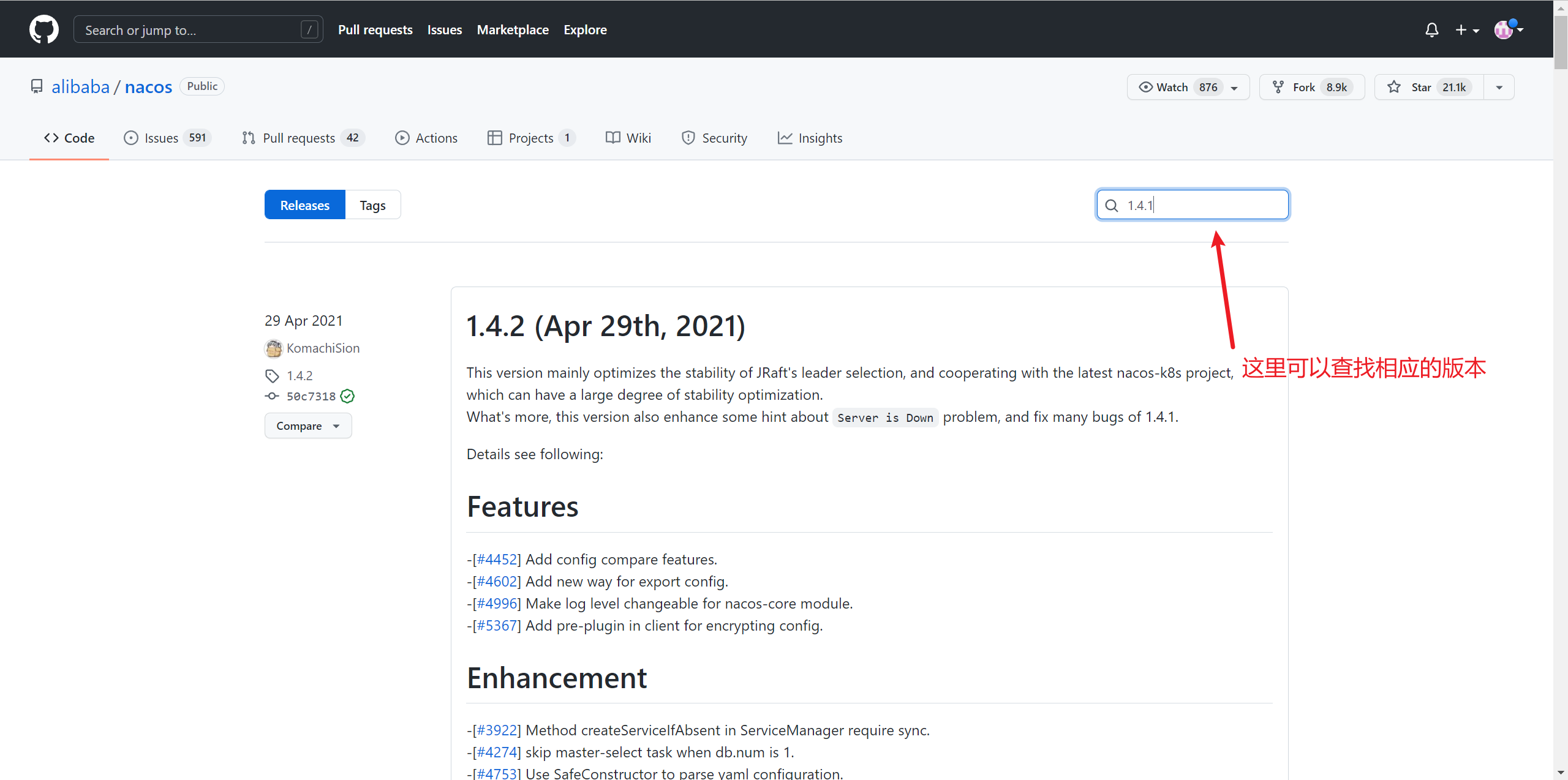 本篇博客采用1.4.1.版本的Nacos,直接点击下载就好。