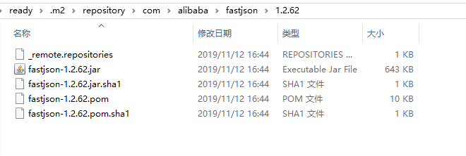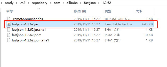 上面是fastjson 1.2.62这个jar,我们看一下这个jar在本地仓库中的位置,如下图