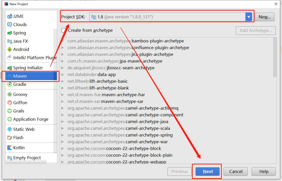创建一个maven项目,打开idea,点击File->New->Project,选择Maven,如下: