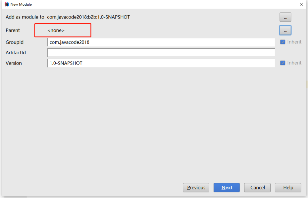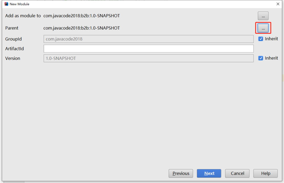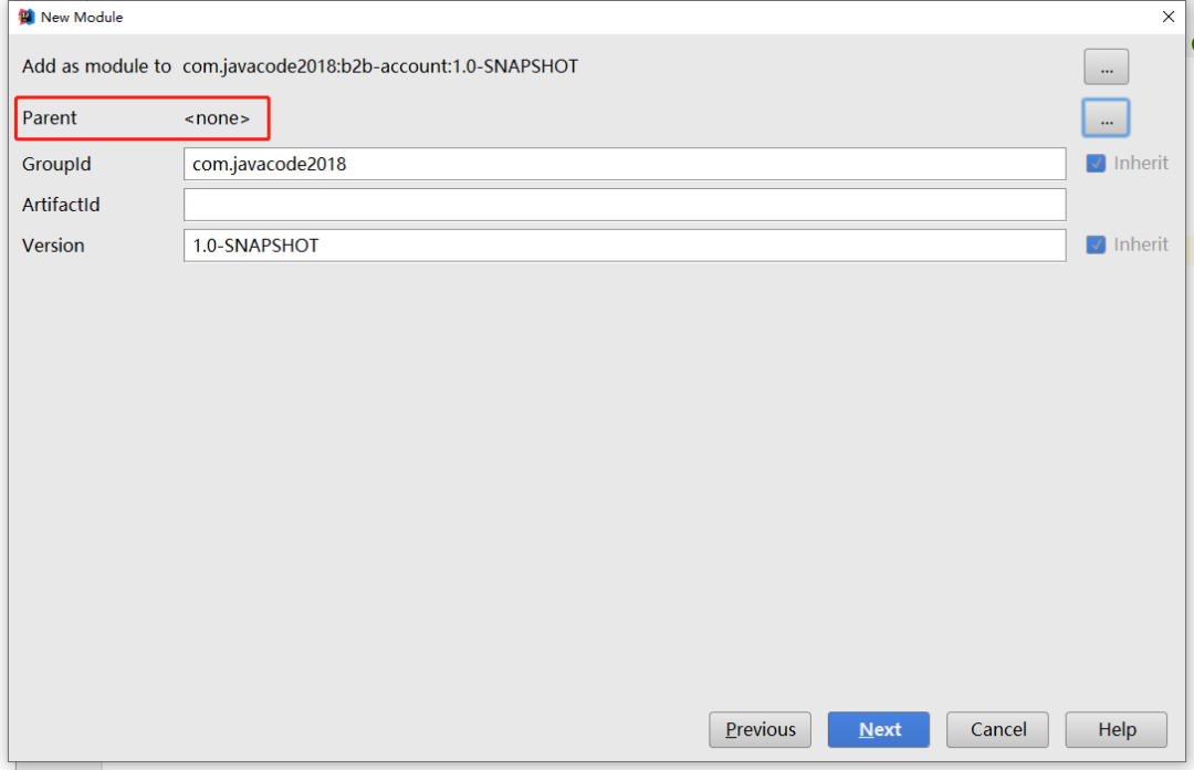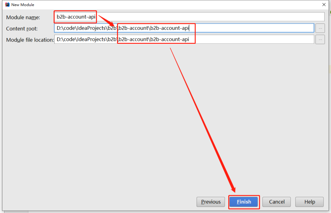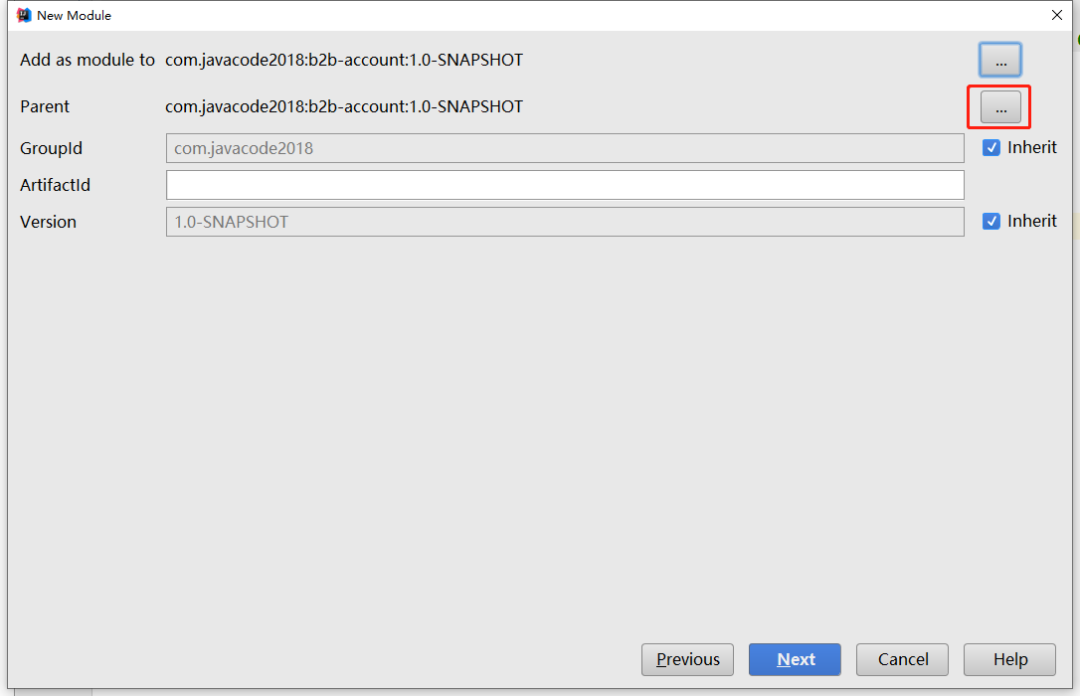 将上面的Add as module to设置为b2b-account模块,表示新增的这个模块被b2b-account聚合进行管理。