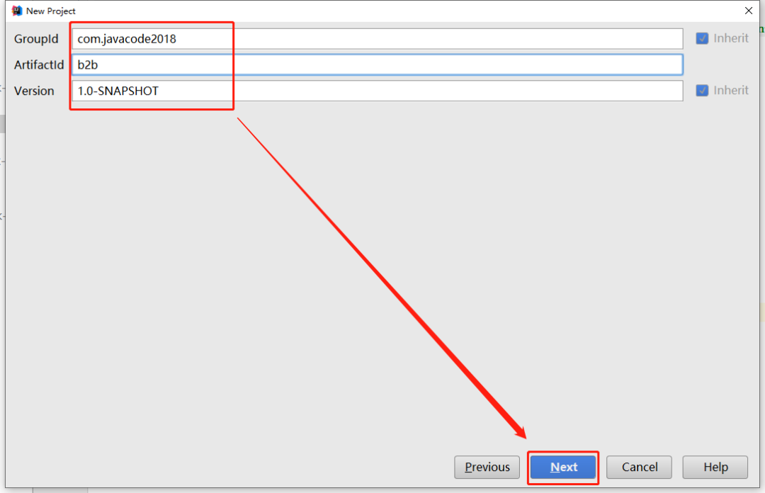 点击上图中的Next,输入Project name为b2b-account,如下图: