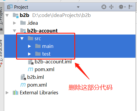 b2b-account-service依赖于b2b-account-api模块,所以在b2b-account-service/pom.xml中加入下面配置: