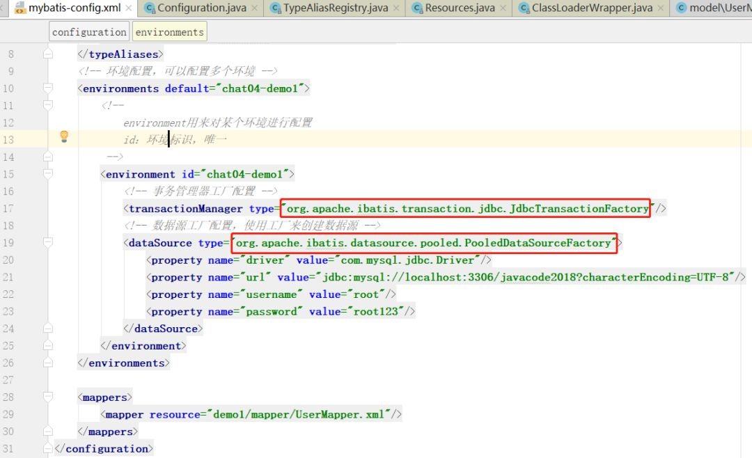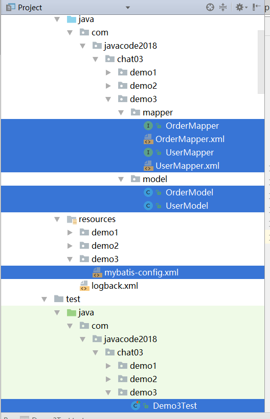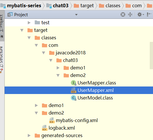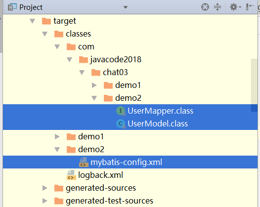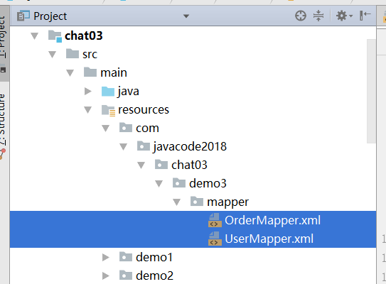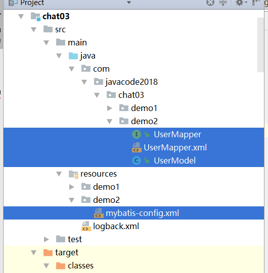 - <mapper resource="demo1/mapper/UserMapper.xml"/>