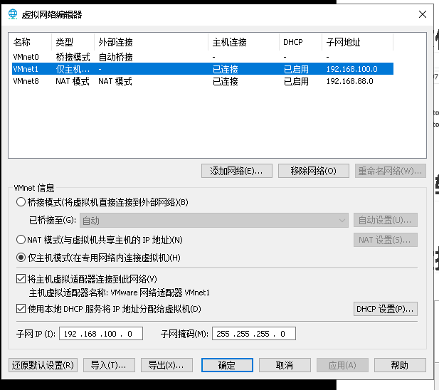 网络编辑器配置仅主机网段