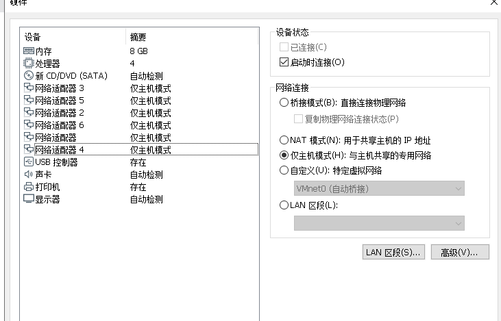 添加5个网络适配器仅主机