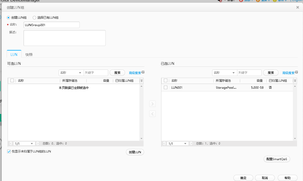 创建LUN并拖入LUN组