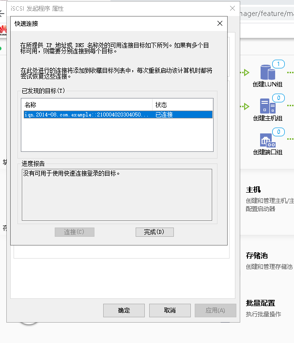 打开iscsi发起程序连接