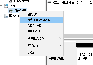 磁盘管理重新扫描磁盘