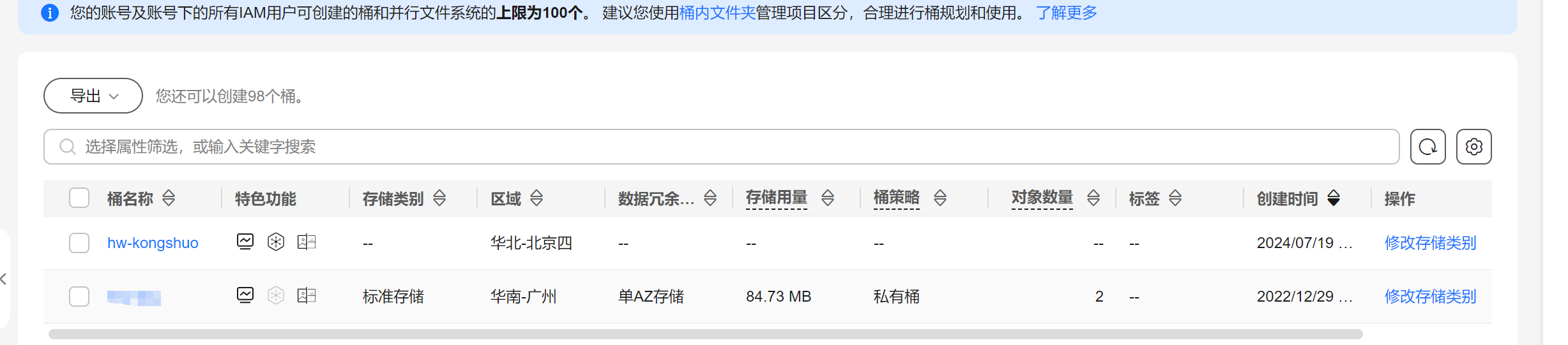 输入10选择华为云OBS