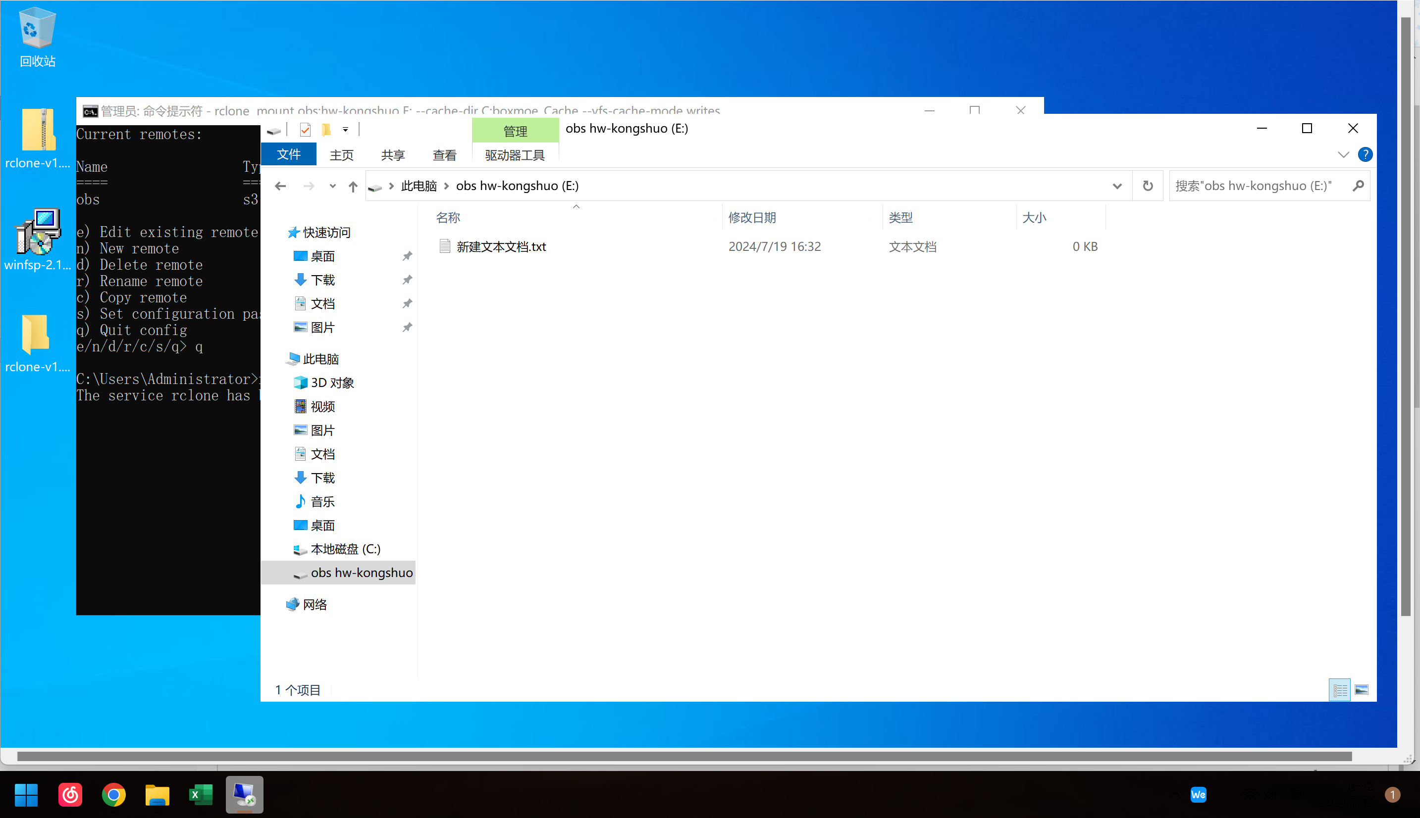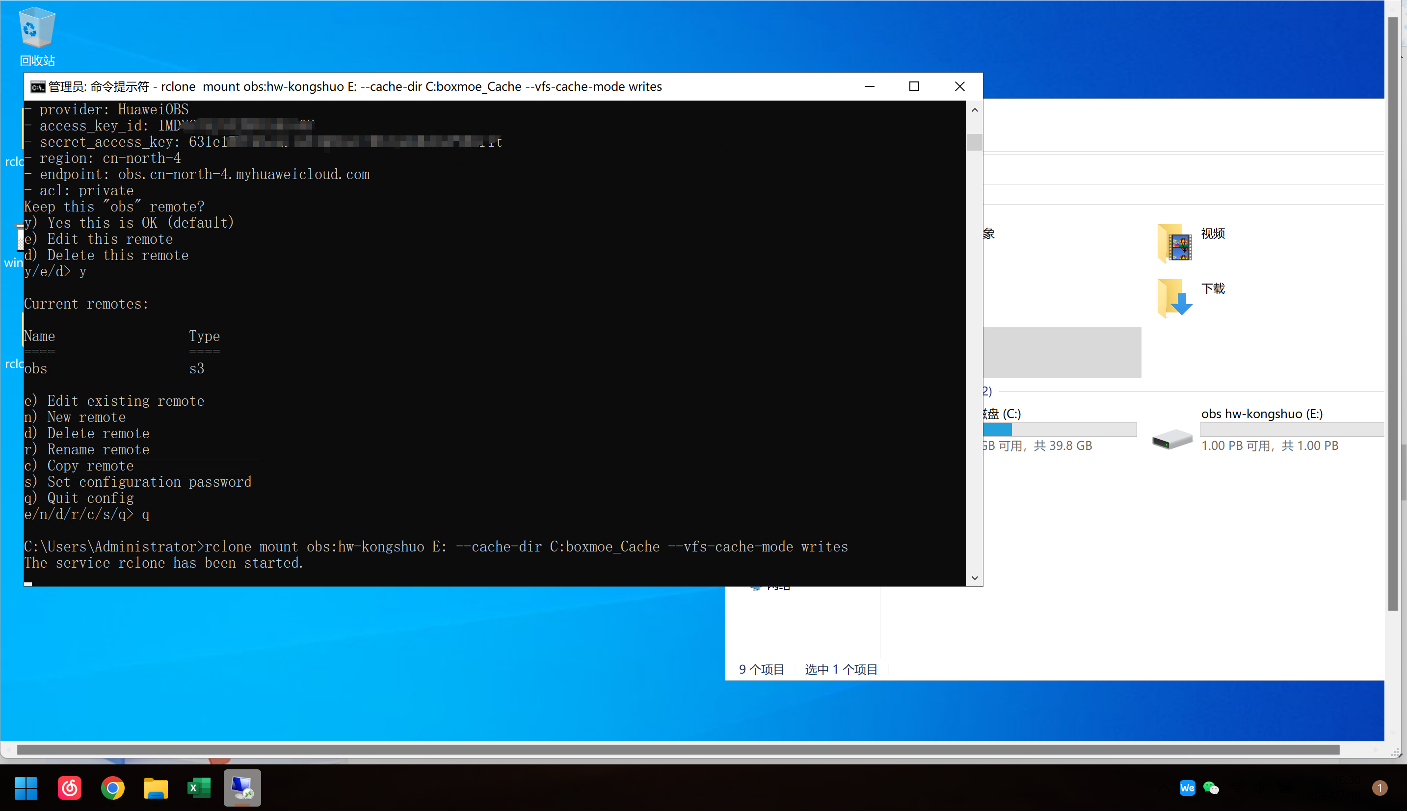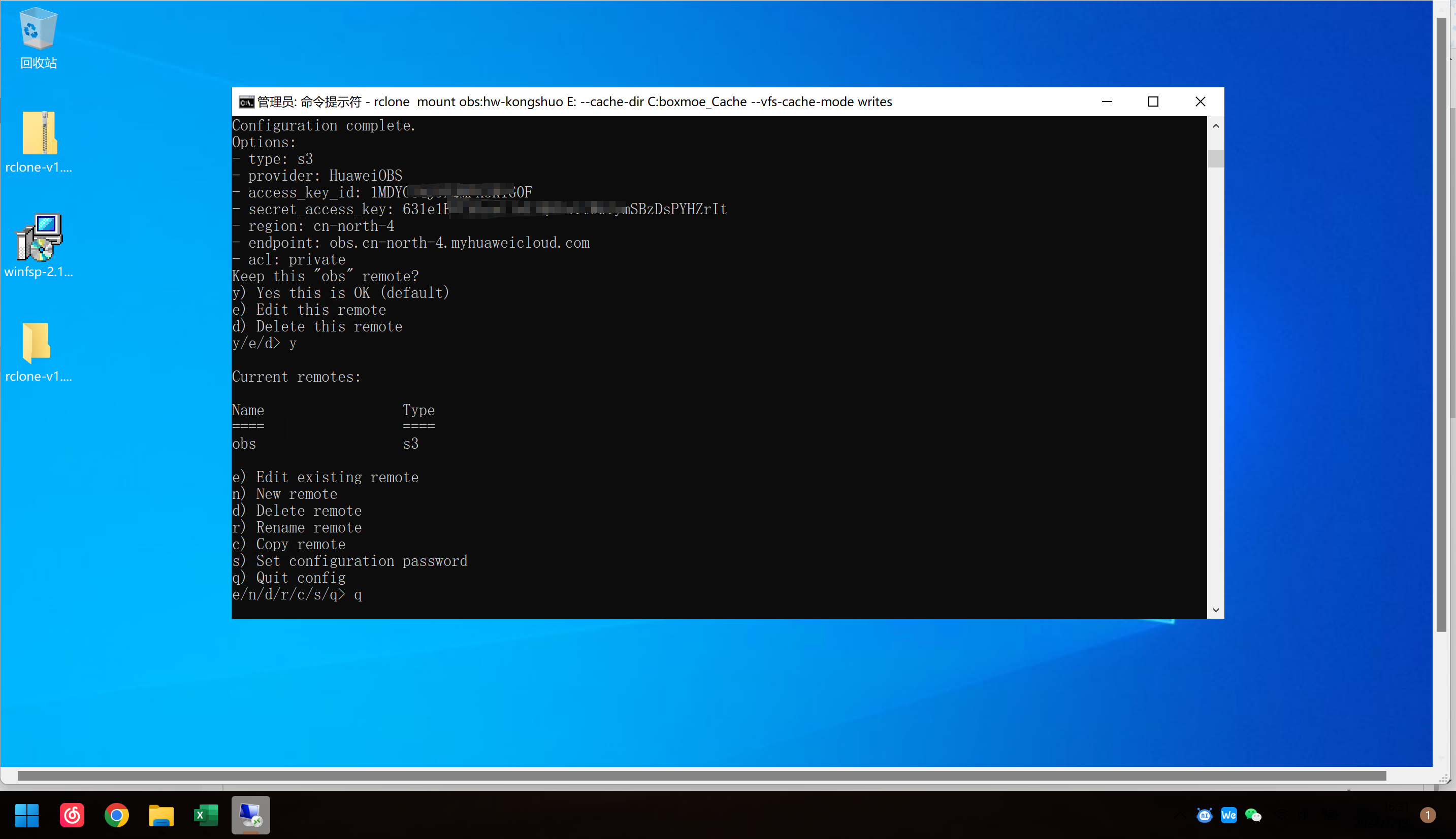 使用rclone工具挂载华为云OBS至Windows本地磁盘使用