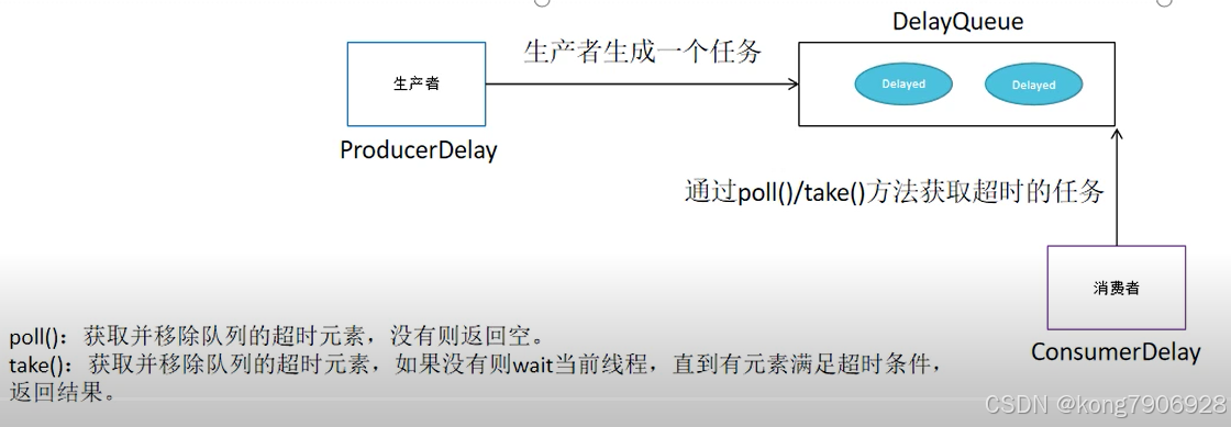 DelayQueue 是一个支持延时获取元素的阻塞队列, 内部采用优先队列 PriorityQueue 存储元素,同时元素必须实现 Delayed 接口;在创建元素时可以指定多久才可以从队列中获取当前元素,只有在延迟期满时才能从队列中提取元素。