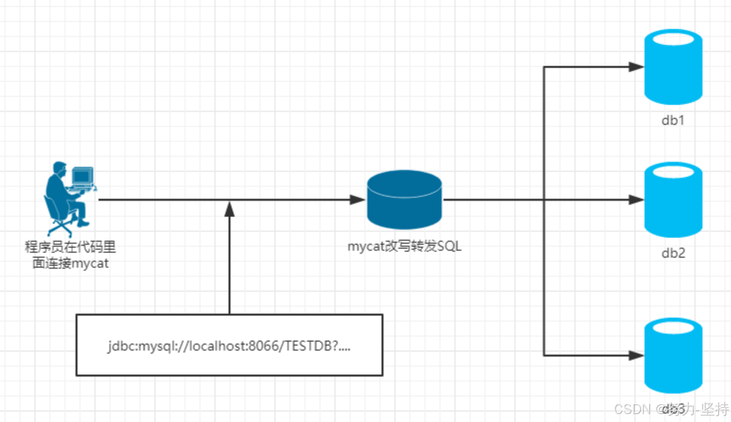 Proxy属于中间层方案,在应用程序和MySQL之间搭建一层Proxy。中间层介于应用程序与数据库间,需要做一次转发,基于JDBC协议转发,例如Mycat