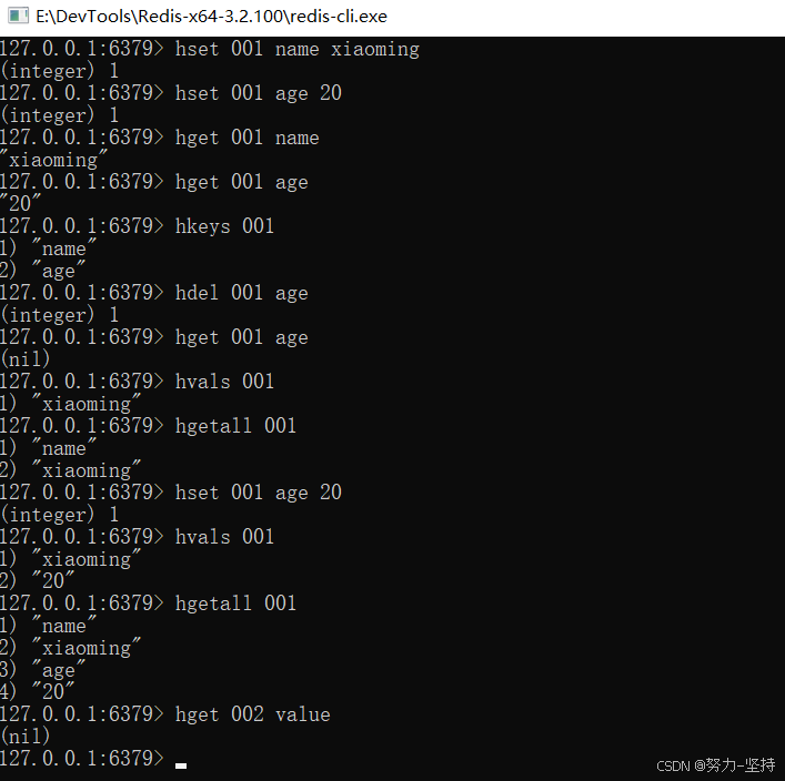 HSET key field value 将哈希表 key 中的字段 field 的值设为 value