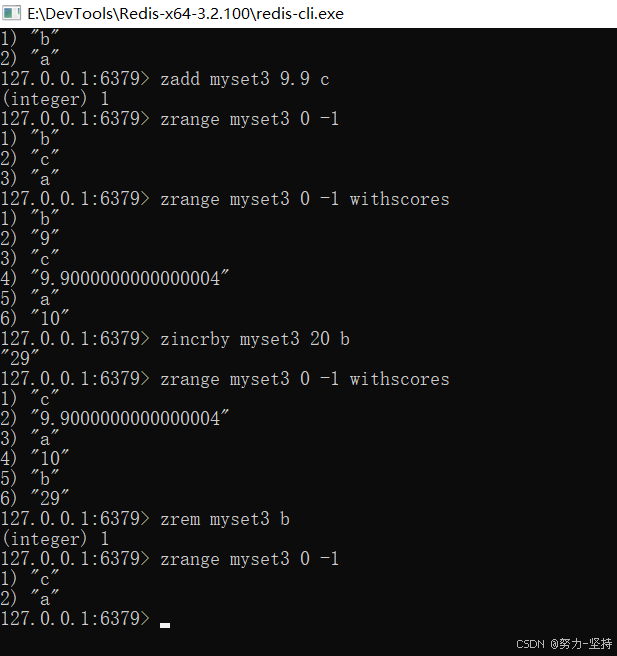 ZADD key score1 member1 [score2 member2] 向有序集合添加一个或多个成员,或者更新已存在成员的 分数