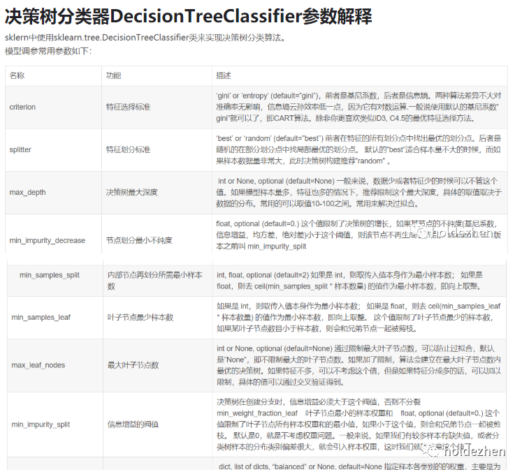 决策树分类器DessionTreeClassifier参数解析