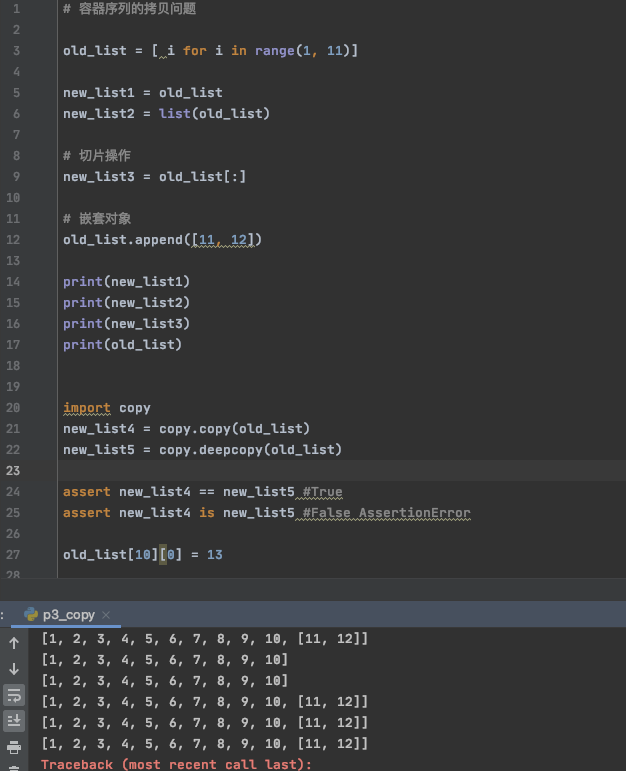 深浅拷贝,可以通过查看变量的内存地址来判断。print(id(L)) 打印L的内存地址