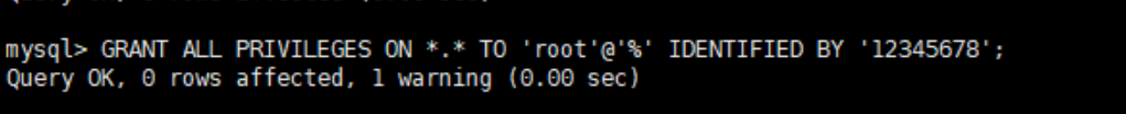 GRANT ALL PRIVILEGES ON *.* TO 'root'@'%' IDENTIFIED BY '你的密码';