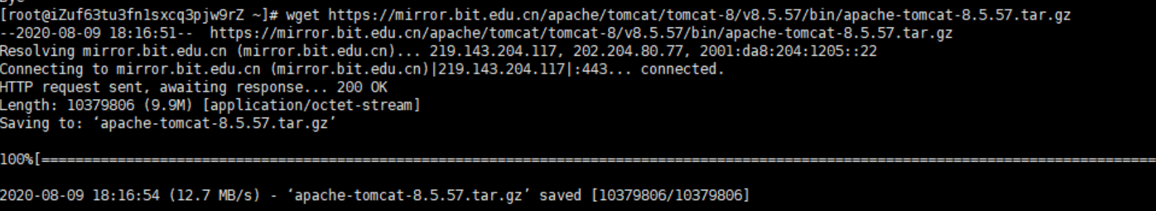 wget https://mirror.bit.edu.cn/apache/tomcat/tomcat-8/v8.5.57/bin/apache-tomcat-8.5.57.tar.gz