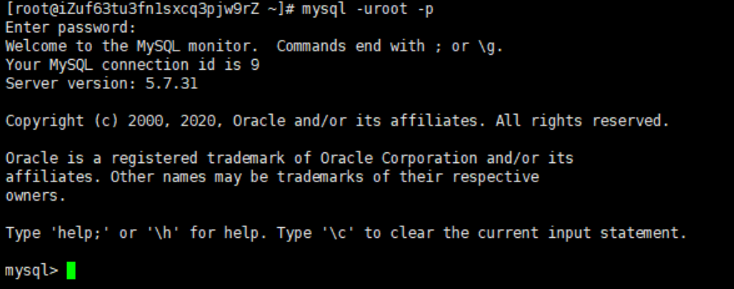 提示输入 Enter password 时将上面获取到的root密码输入进去