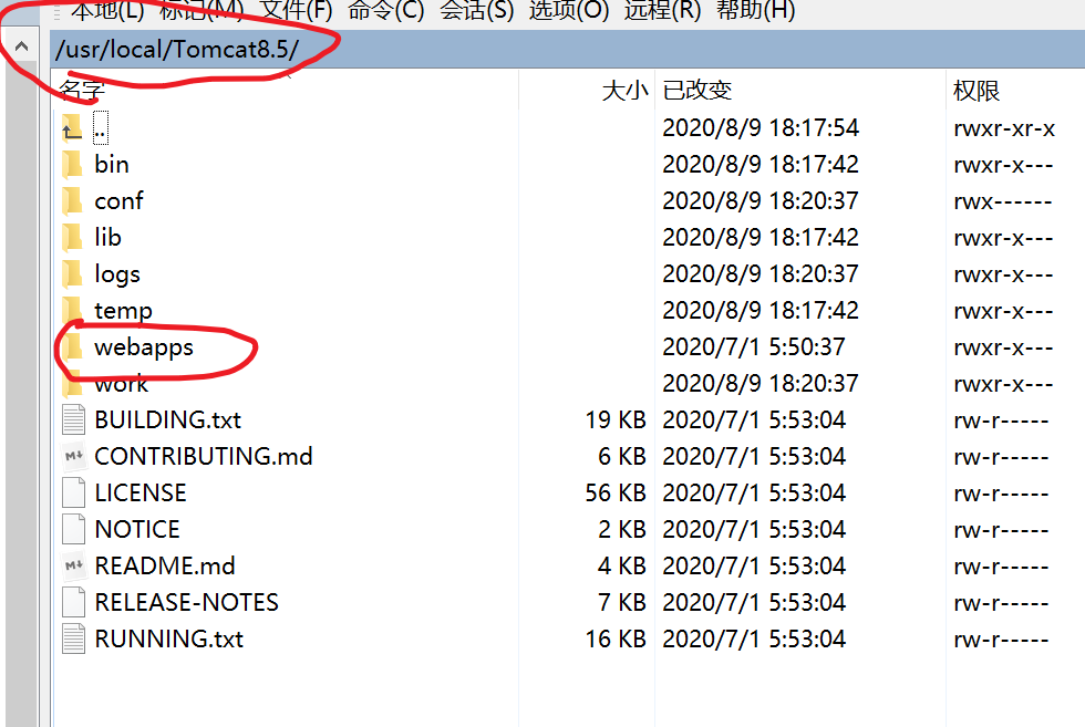 可以看出此时的目录是/usr/local/Tomcat8.5
