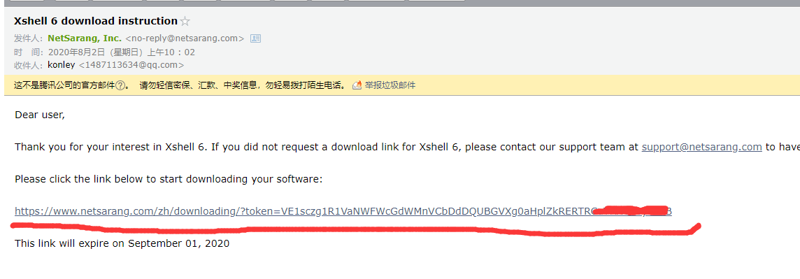 打开刚刚填写的邮箱,在里面找到Netsarang给你发的邮件,点击里面的下载链接就可以下载安装包