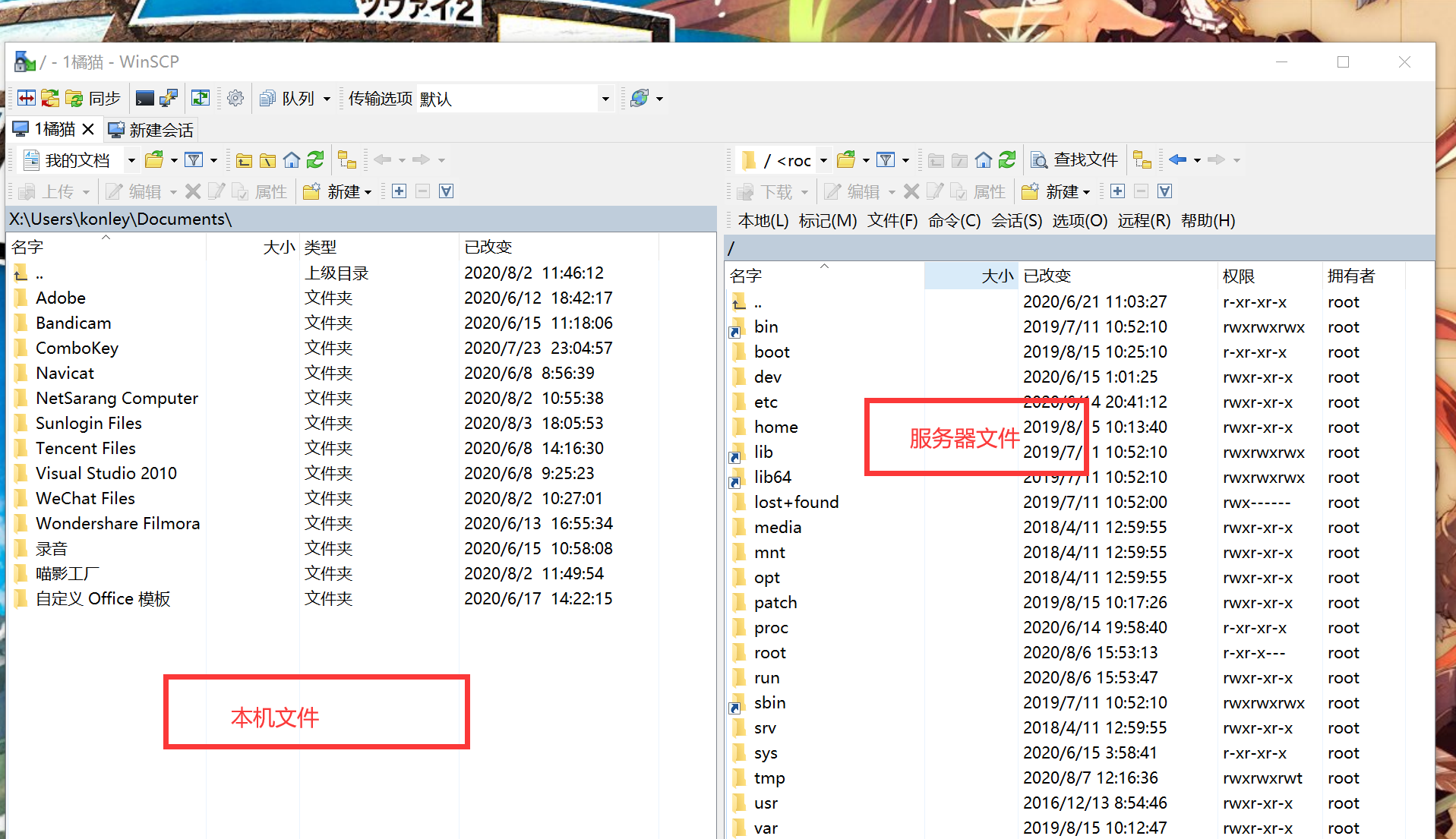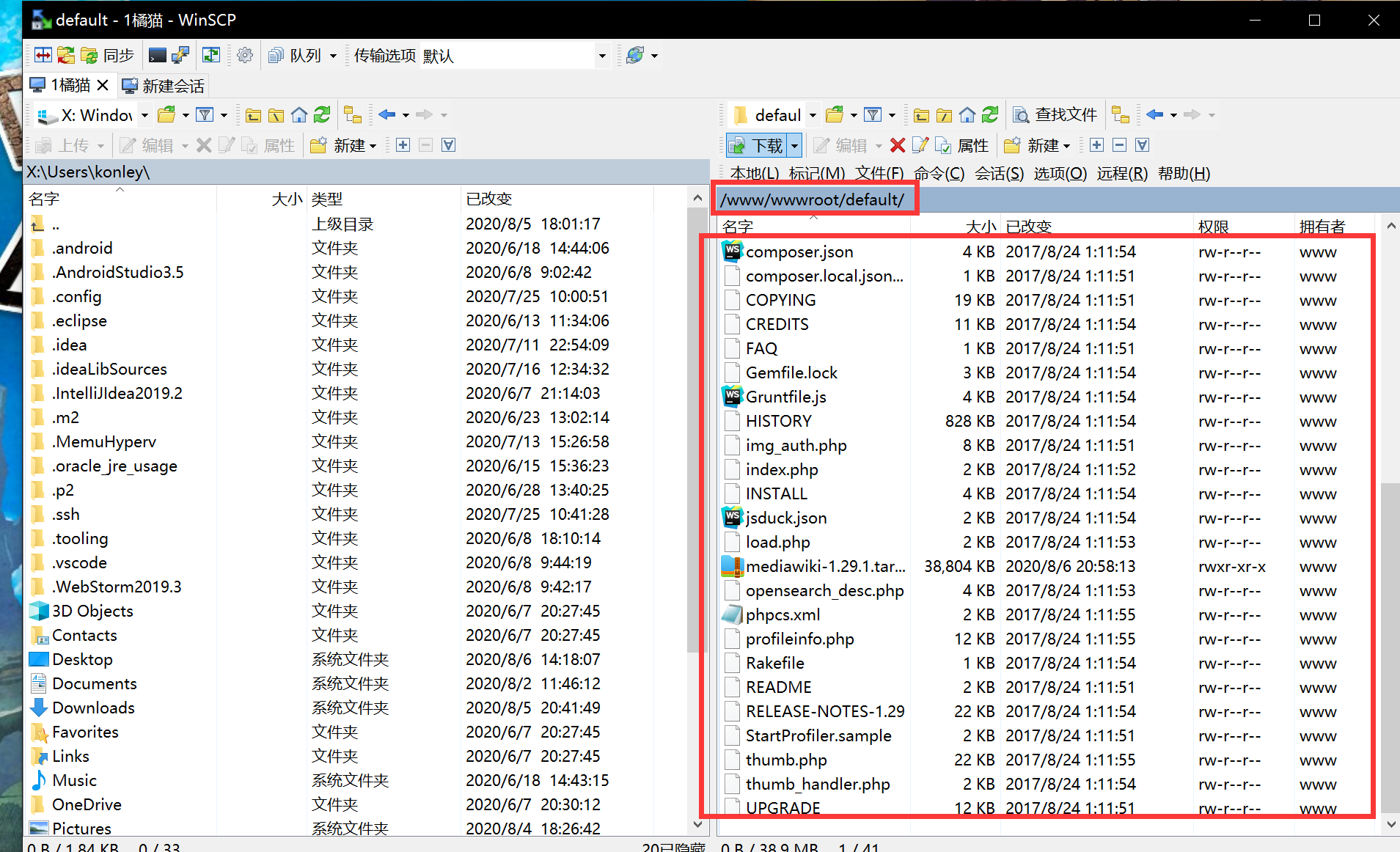 右边窗口就是当前服务器的文件系统,可以进行传输文件