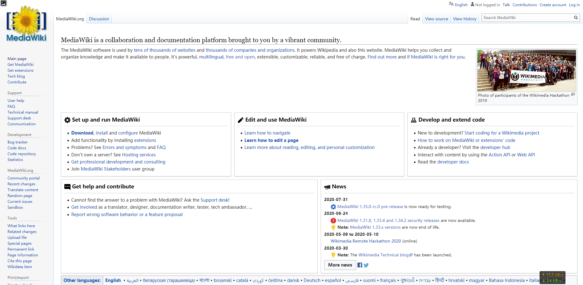 MediaWiki 已使用超过350种语言进行了本地化,其可靠性和强大的功能集为其赢得了庞大而充满活力的第三方用户和开发者社区。