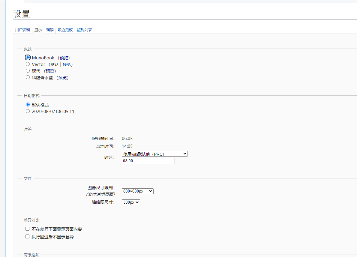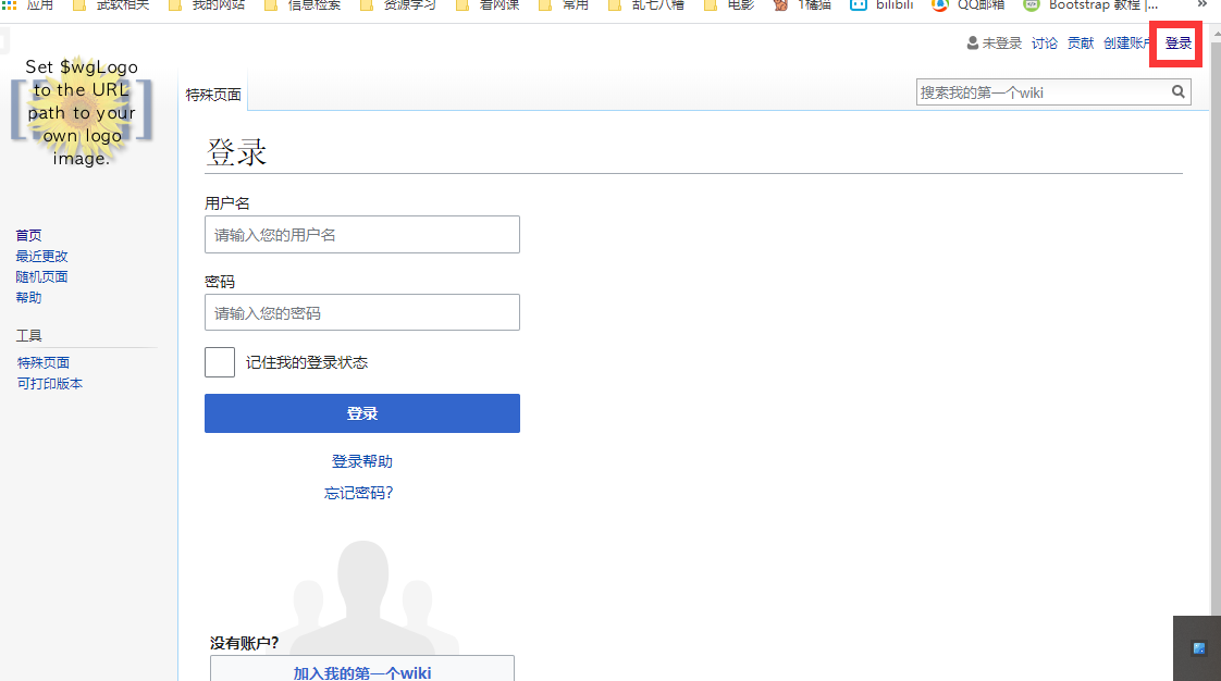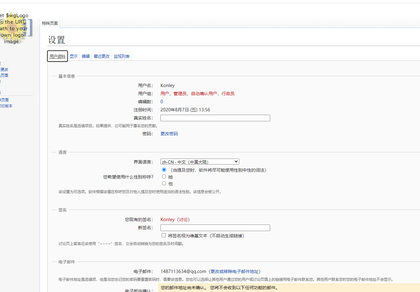 登录后,单击右上角的 参数设置,可以编辑个人资料和wiki皮肤以及相关信息