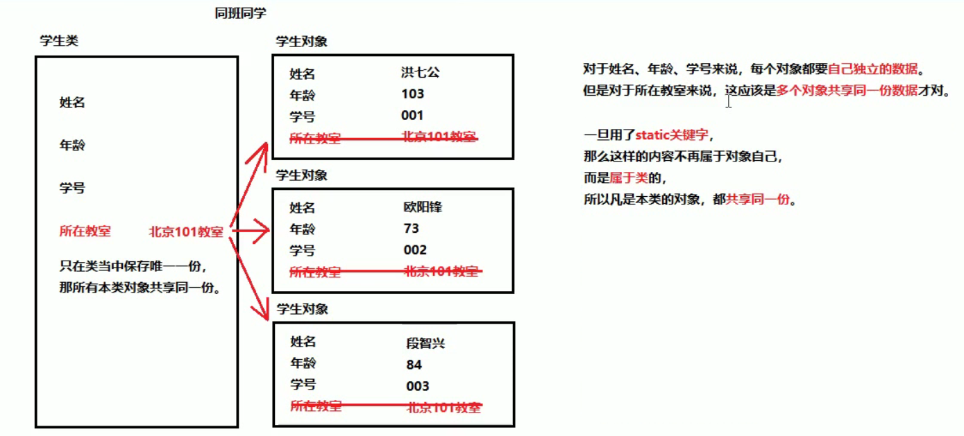被static修饰的成员可以并且建议通过类名直接访问。虽然也可以通过对象名访问静态成员,原因即多个对象均属于一个类,共享使用同一个静态成员,但是不建议,会出现警告信息。