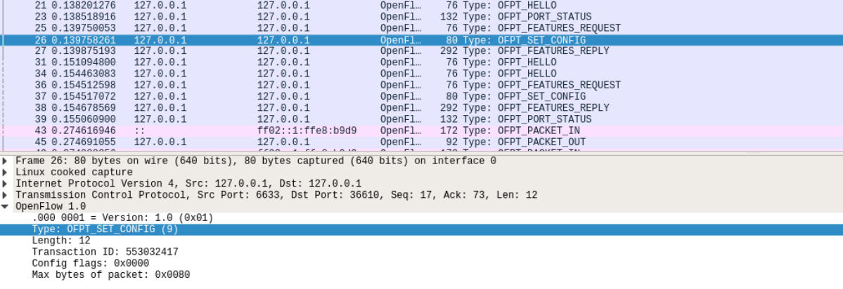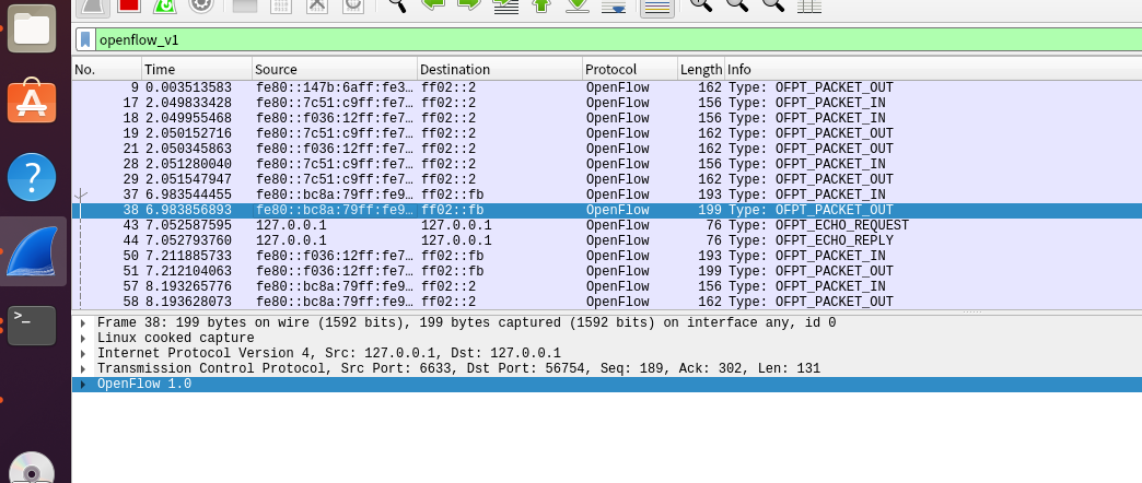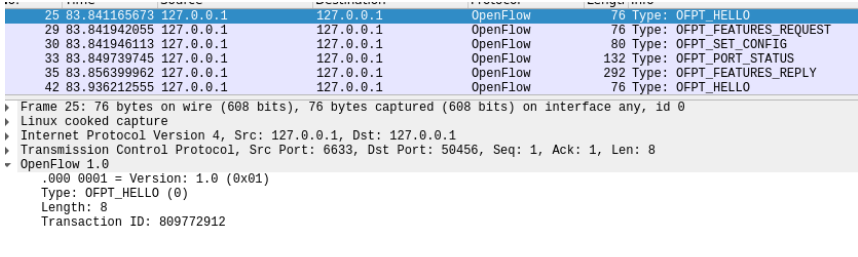 - 能够运用 wireshark 对 OpenFlow 协议数据交互过程进行抓包;