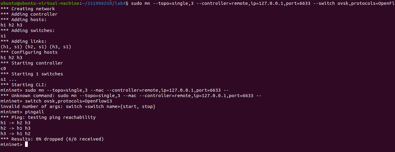3. 利用Mininet平台搭建下图所示网络拓扑,并连接OpenDaylight控制器;