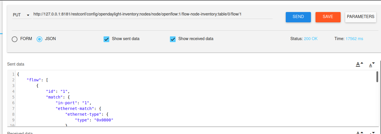 - 能够使用Postman工具调用OpenDaylight API接口下发流表。