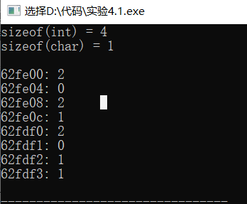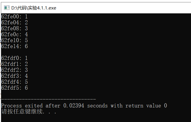 printf("\n"); // 输出二维数组b中每个元素的地址(以十六进制显示)、元素值