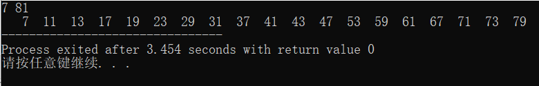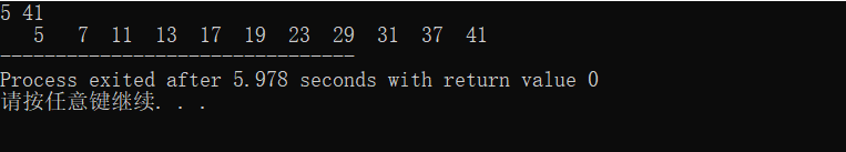 // 例如,输入6和21,则输出为:7 11 13 17 19。
