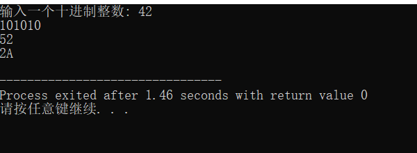 dec2n(x, 16); // 函数调用: 把x转换成十六进制输出