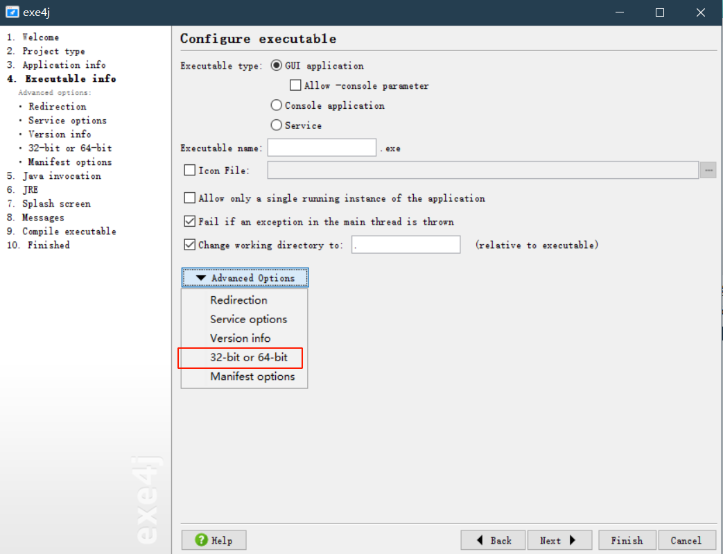 - 可执行类型(Gui图形界面,console命令行黑窗口,service服务)