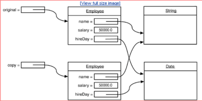这个时候我们就需要进行deep Clone了,对那些非基本类型的域进行特殊的处理,hireDay。我们可以重新定义Clone方法,对hireDay做特殊处理,如下