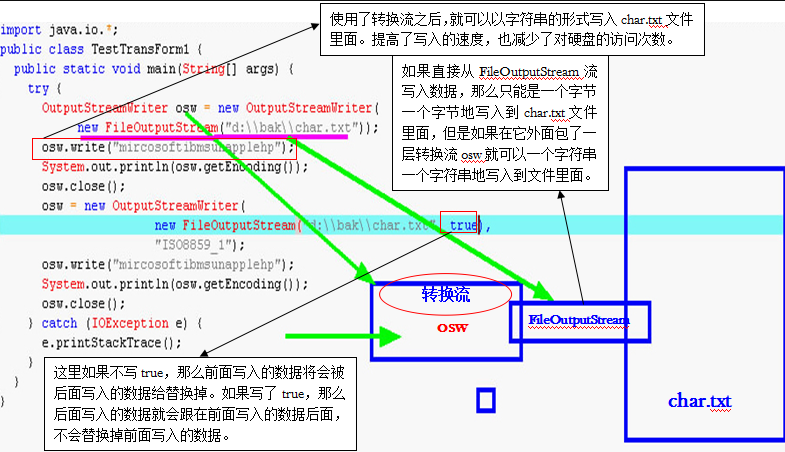 OutputStream是字节流,Writer是字符流,OutputStreamWriter就是把OutputStream转换成Writer。把OutputStream转换成Writer之后就可以一个字符一个字符地通过管道写入数据了