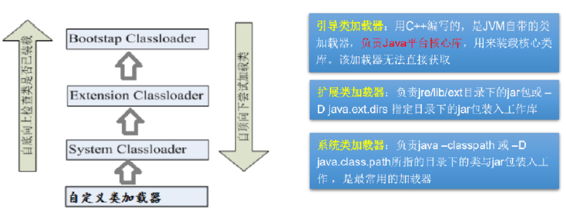 - 类缓存:标准的JavaSE类加载器可以按要求查找类,但一旦某个类被加载到类加载器中,它将维持加载(缓存)一段时间。不过JVM垃圾回收机制可以回收这些Class对象