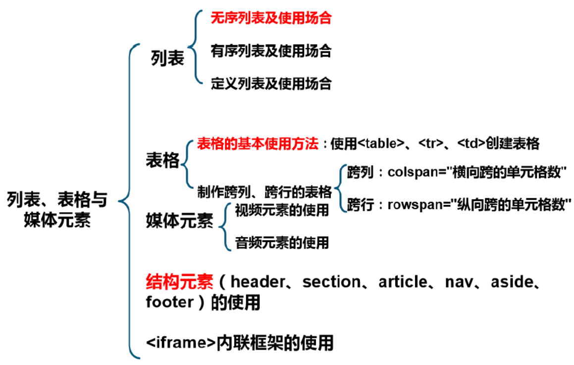 HTML(列表&表格&媒体元素)