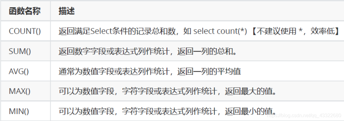2、聚合函数